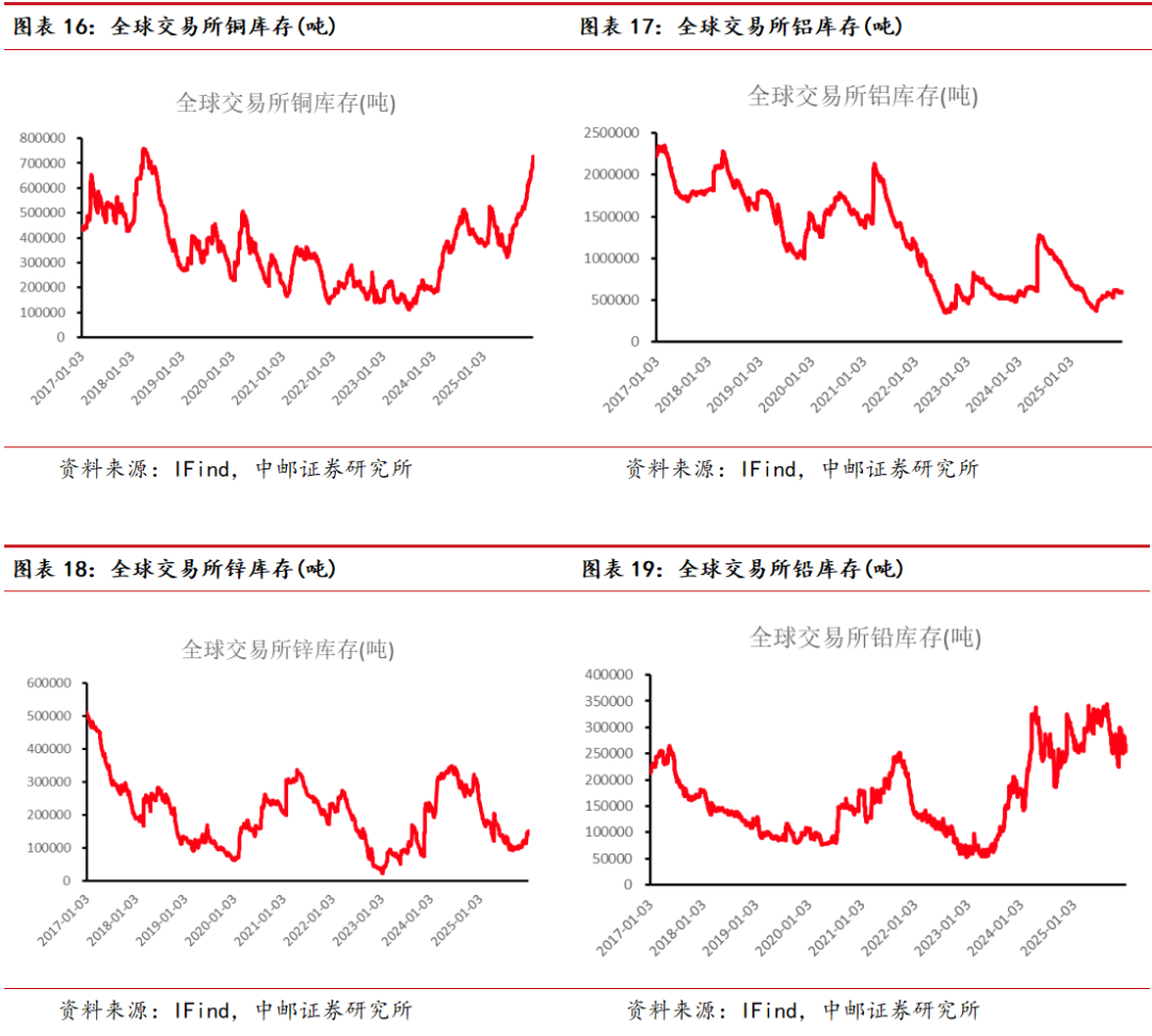 基本金属方面:本周全球显性库存铜累库28066吨、铝去库6204吨、锌去库1793吨、铅去库7453吨、锡去库70吨、镍累库5091吨。