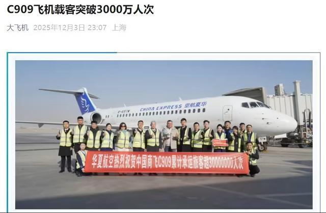 【环球网科技综合报道】12月4日消息,中国商飞公司“大飞机”公众号近日官宣,华夏航空G54969航班从喀什飞往伊宁的航程中,国产C909涡扇支线客机迎来第3000万名乘客。这一里程碑式突破,标志着我国自主研制的C909飞机正式迈入规模化运营新阶段,为中国民航事业高质量发展注入强劲动力。