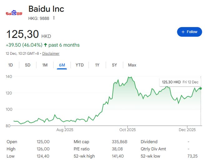 资本市场对此反应积极。据彭博12月12日报道,高盛与麦格理证券上周均表示,昆仑芯潜在的IPO是百度“解锁价值”的关键一步。自8月底以来,百度港股的平均目标价已上调约60%,涨幅在恒生科技指数成分股中位列同期第三。此前,受昆仑芯获得国有巨头中国移动订单及分拆上市消息的提振,百度股价已累计上涨45%。