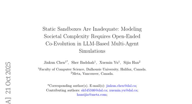 达尔豪斯大学的研究团队发现了一个重要问题:目前基于大型语言模型(就是像ChatGPT这样的AI)的多智能体社会模拟系统,仍然被困在这种"静态沙盒"的思维里。他们认为,要真正模拟人类社会的复杂性,我们需要一个全新的框架——让AI智能体不仅能够交流,还能演化、适应,甚至重塑它们的世界。