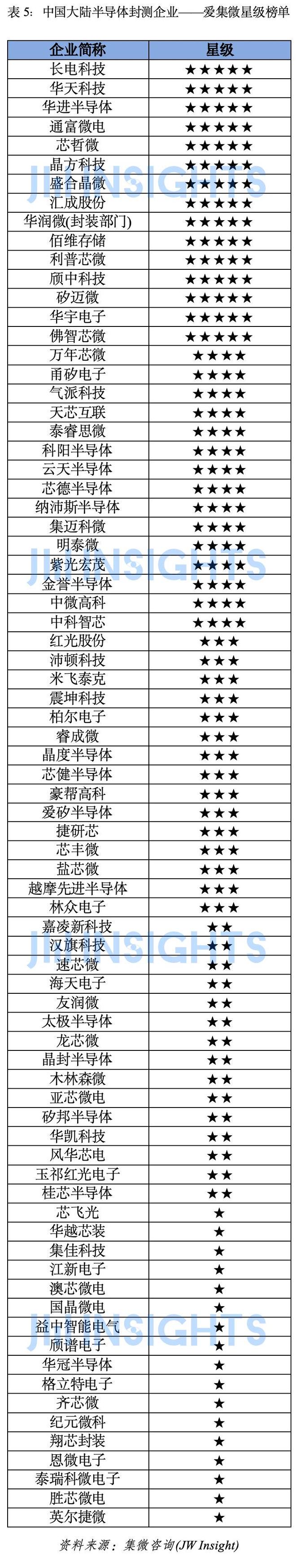 中国大陆半导体封测企业——爱集微星级榜单