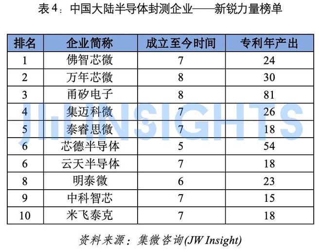 针对成立于近10年内的半导体封测企业,综合企业专利年产出量、专利价值度等多维度数据,爱集微知识产权咨询发布新锐力量企业十强榜单。