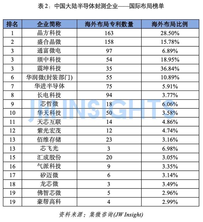 中国大陆半导体封测企业——国际布局榜单