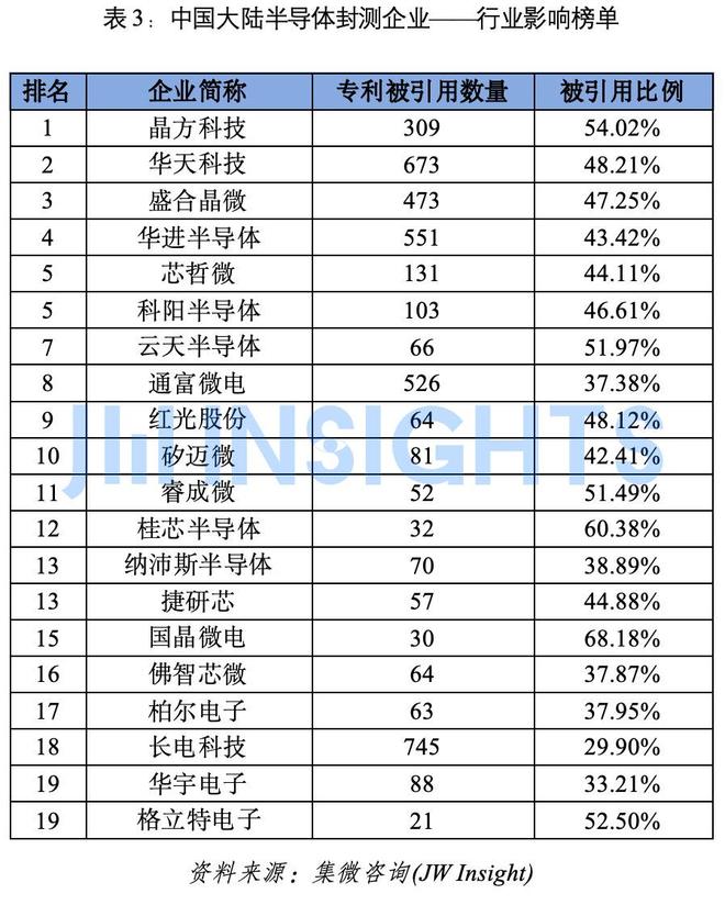 中国大陆半导体封测企业——行业影响榜单