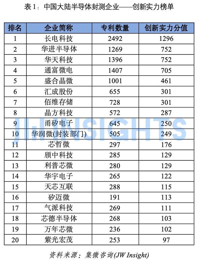 中国大陆半导体封测企业——创新实力榜单