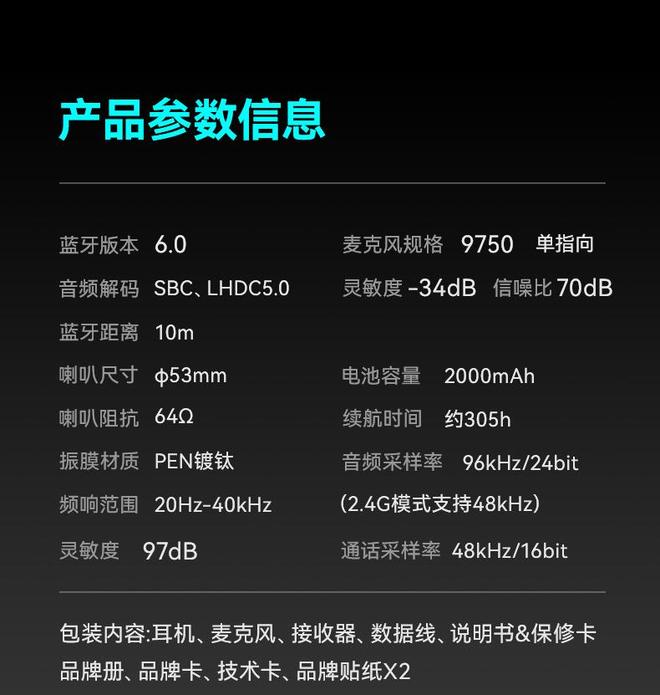 此外,这款耳机还支持蓝牙 6.0 及 2.4GHz 闪连技术(加有线共四模连接),支持 SBC、LHDC5.0 解码,支持 THX 联合首发定制空间音效;配备 2000mAh 电池,续航时间约 305h。