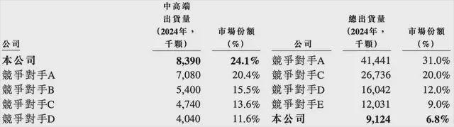 根据灼识咨询的数据,按2024年出货量计,爱芯元智是全球第一大中高端视觉端侧AI推理芯片提供商(市占率为24.1%)、全球第五大视觉端侧AI推理芯片提供商(市占率为6.8%)、中国第二大国产智能驾驶SoC供应商(售出超过51.8万颗智能汽车SoC)、中国第三大边缘AI推理芯片供应商(市占率为12.2%)。