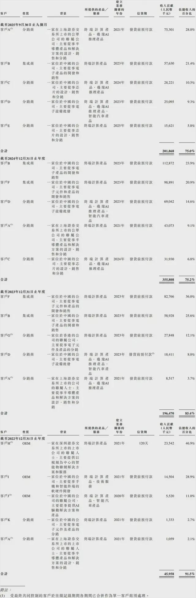 客户A、客户C、客户E、客户J亦是其供应商。客户A和客户J均为最终共同控制下的一组实体,被合并视为单一客户群组。