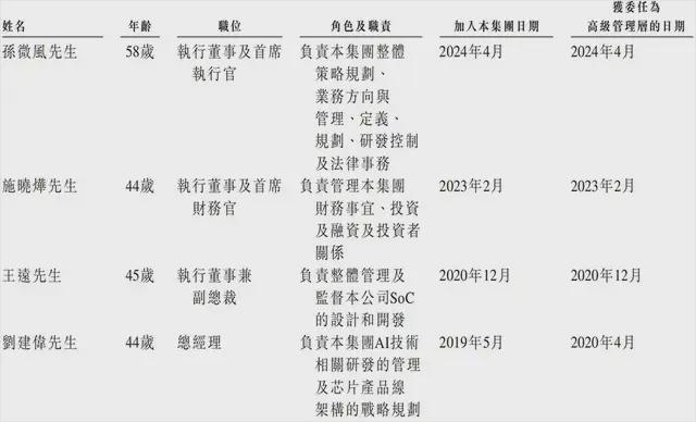 核心高管中,孙微风于2024年2月加入爱芯元智,现担任CEO,今年58岁。
