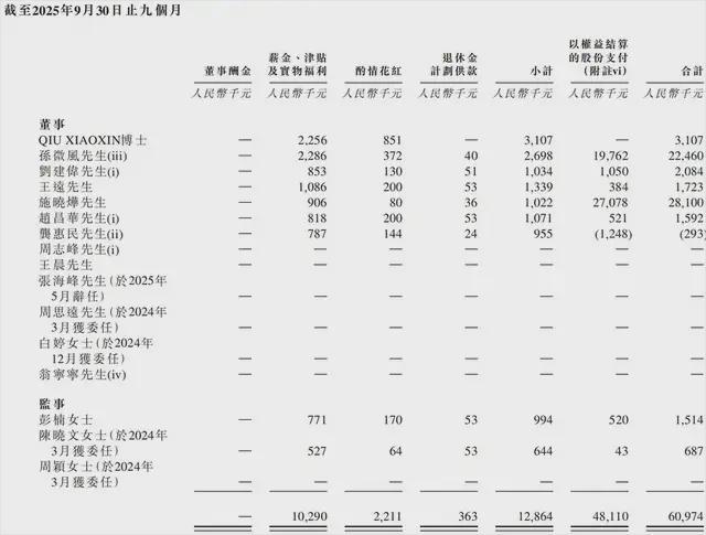 2024年及2025年1-9月,爱芯元智董事及监事酬金如下: