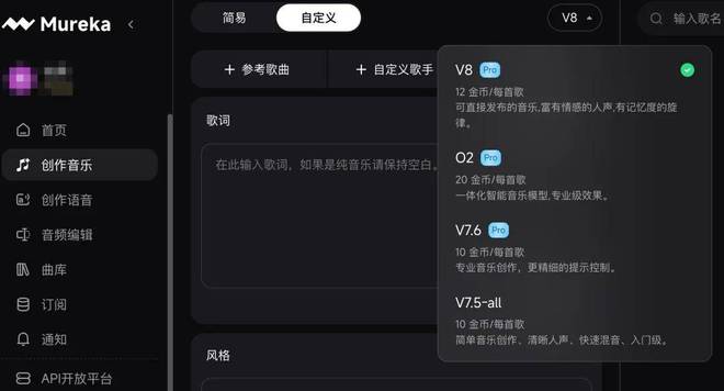 进入 Mureka 官网,选择最新的「V8」版本。