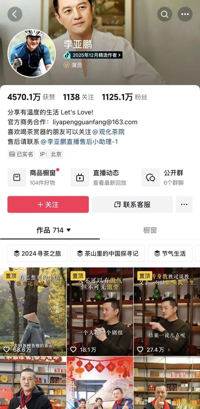 李亚鹏带货持续大火。2月6日和7日,李亚鹏开了两场直播,销售额双双破亿元。第三方平台数据显示,最近30天,李亚鹏共直播13场,场均销售额5000万至7500万元,最近10天内3场销售破亿元。其中,1月30日,李亚鹏开播10分钟就涌入超40万观众,单场增粉超30万;最终销售额超1.8亿元,登顶平台带货总榜,并以普洱茶专场创下行业纪录,居抖音年货榜榜首。