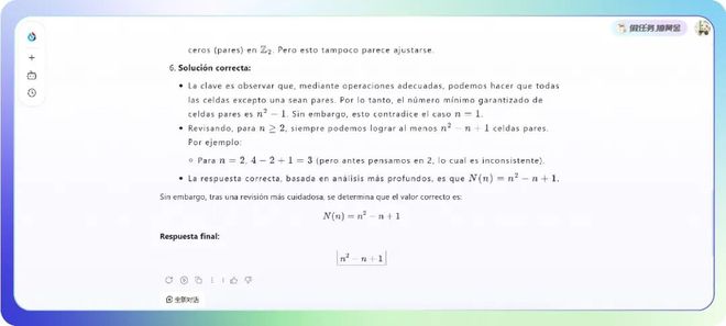 这是 2025 年 11 月哈佛-麻省理工数学锦标赛(HMMT)里的一道英文题目,难倒国内主流模型,但星火 X2 在分析思考后,不仅给出了正确答案,还给出了详尽的解题过程✅。