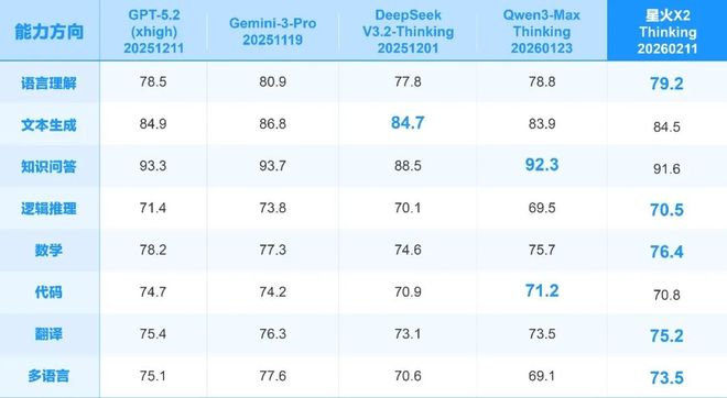 1、通用能力全面升级,星火 X2 整体能力对标国际顶尖模型水平,在数学、推理、语言理解、智能体等能力上媲美国际最优;130+ 多语言综合能力继续提升,拉美、东盟等地区重点语种效果保持业界领先水平。