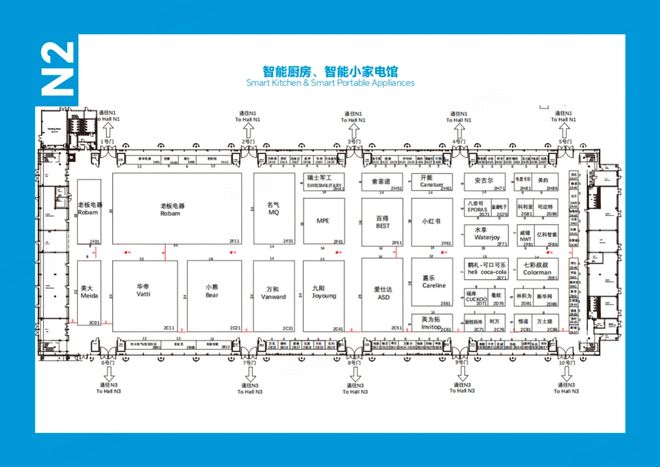 N1/N2馆(智能厨房·智能小家电馆):智慧厨房体验主场,方太、华帝、苏泊尔、小熊电器、爱仕达、九阳等品牌坐镇,智能厨电、健康家电、创意小家电全覆盖,解锁AI赋能的烹饪新方式。