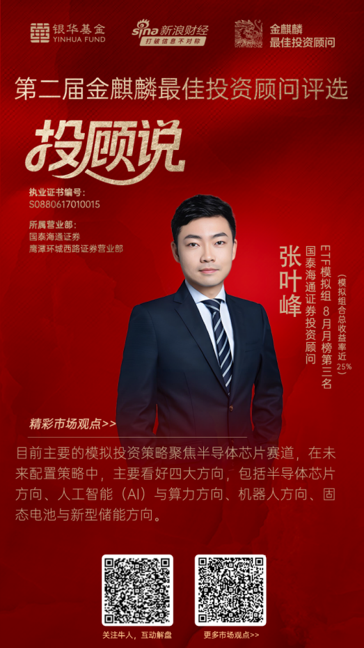 目前股市交投活跃,再谈到如何看待当下股市走势时,张叶峰表示当前股市呈现出结构性行情的特点。整体市场受到宏观经济环境、政策面、资金面等多种因素影响,存在一定的波动,但部分优质赛道和成长板块,如半导体芯片板块,依然有较好的表现机会。经济的持续恢复、政策对科技创新领域的支持等,为这些板块提供了一定的支撑,但同时也面临着国际市场变化、板块轮动等因素的影响,所以市场整体是分化且有波动的。