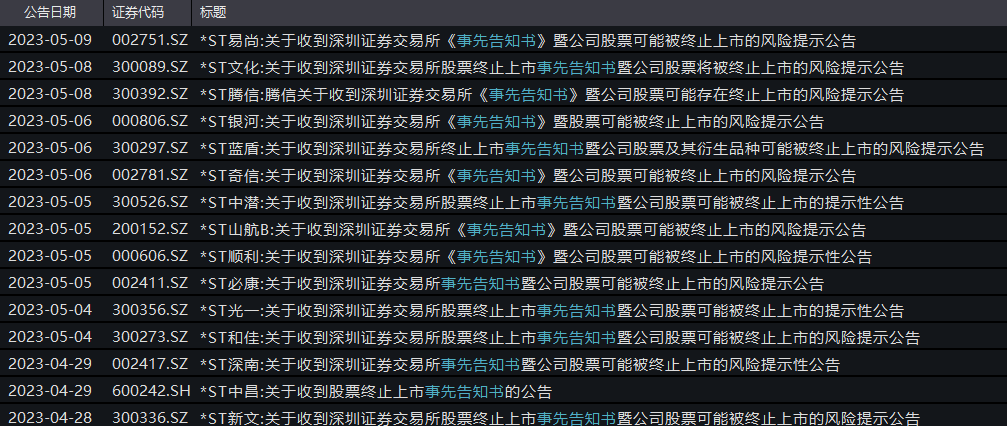 昨日盘后,吉艾退发布关于公司股票进入退市整理期交易首日的风险提示公告,退市整理期的起始日为2023年5月9日,预计最后交易日期为2023年5月29日。