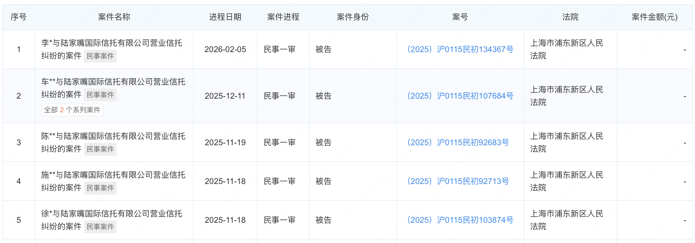事实上,并非只有吉华集团对陆家嘴信托提起了诉讼。