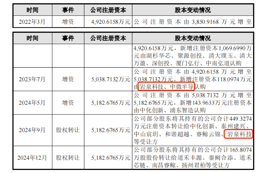 一方面,2023年7月,拓荆科技通过子公司岩泉科技向芯密科技注资2000万元,中微公司通过子公司中微半导注资1000万元;2024年10月28日,芯密科技完成股份制改造后,岩泉科技持股比例为3.81%,中微半导持股0.76%,均低于4%。另一方面,拓荆科技曾在其公告中明确表示,芯密科技是其密封胶圈供应商之一,确立了双方的客户-供应商关系。