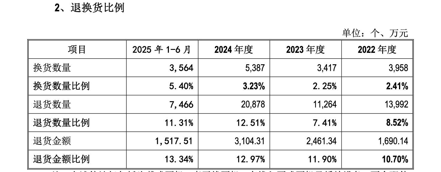 另外,海菲曼的退货金额比例也较高。海菲曼近年来退货金额比例一直高于10%,2025年上半年更是增长到13.3%。而可比公司漫步者、惠威科技未披露退换货情况,同行业的先歌国际披露2023年退货金额仅为1.2%。
