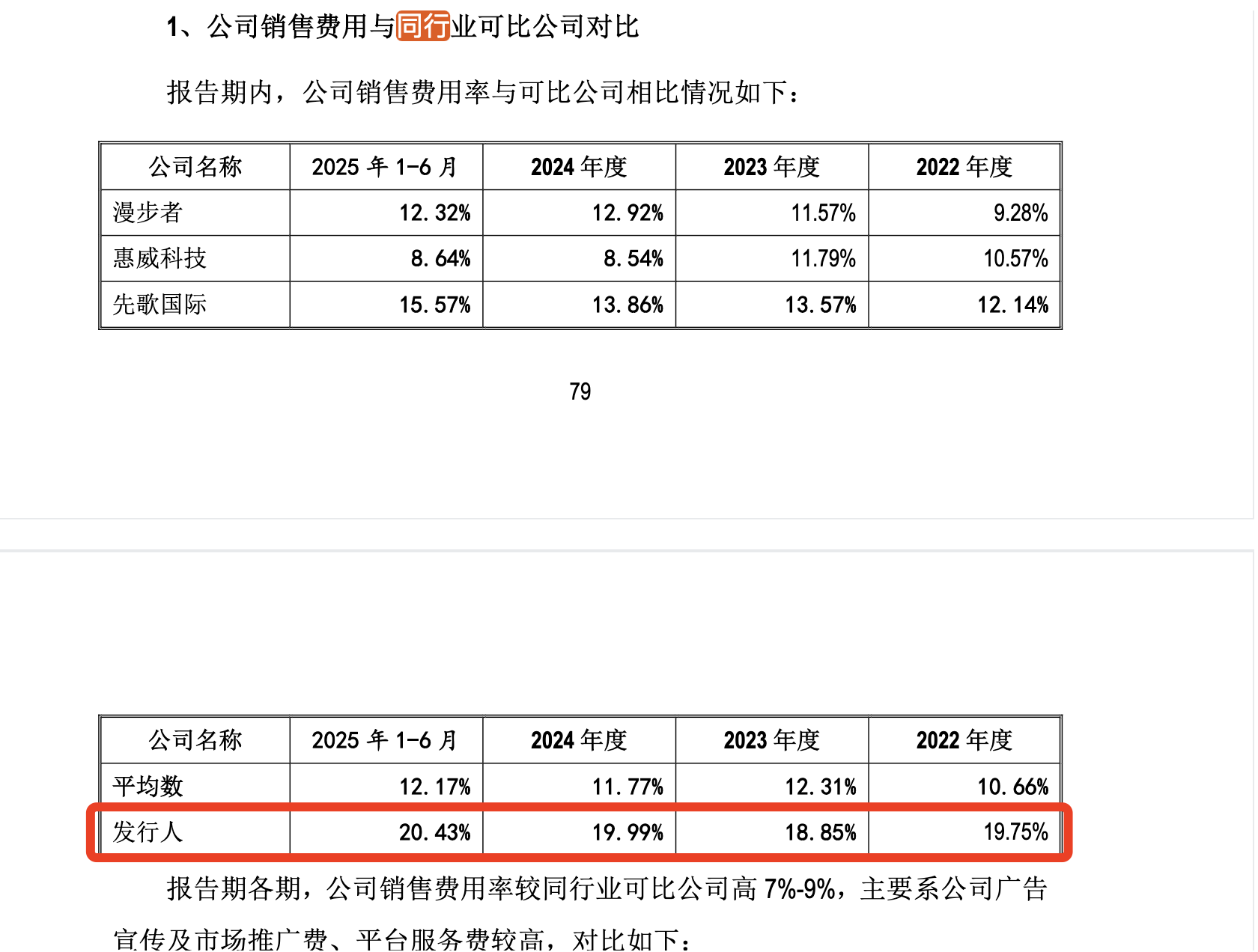 销售渠道部分依靠KOL带货,海菲曼的销售费用率远超同行。2022-2024年以及2025年前三季度,公司的销售费用率分别在19.8%、18.9%、20%以及20.4%,比同行业可比公司高7-9个百分点。根据回复函,海菲曼2025年上半年销售费用1939万元,其中796万元用于各大平台的推广费用以及支付给推广放的相关费用。其中超70%用于线上推广,即电商平台站内推广和站外推广。