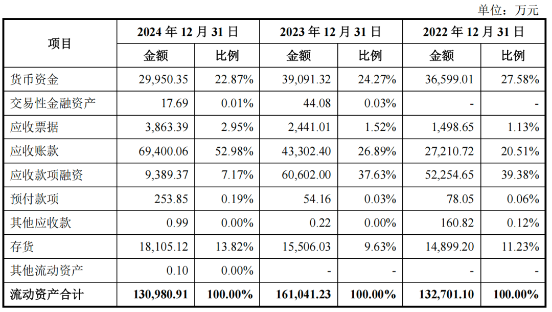 2024年,丰沃股份经营活动产生的现金流量净额仅为1046万元,同降94.67%。现金流回落的同时,公司应收账款规模从2023年末的5.20亿元快速攀升至7.90亿元,账面价值则从4.33亿元上升到6.94亿元,年末占流动资产比重已超过50%。