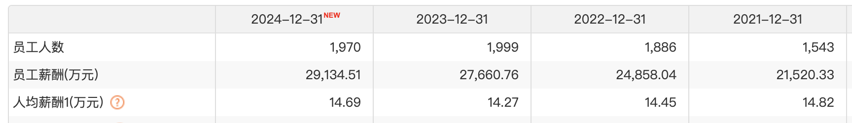 根据东方财富Choice数据, 紫燕百味鸡的员工年薪(包括五险一金及其他员工福利)在2021-2024年分别为14.8万元、14.5万元、14.3万元及14.7万元。