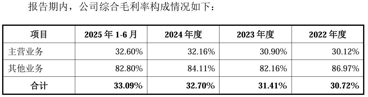 这样的生产模式在报告期内带来了稳定的财务表现,公司营业收入从2022年的7.67亿元增至2024年的9.32亿元,2025年上半年进一步达到5.64亿元;归母净利润相应从1.19亿元升至1.69亿元,2025年上半年为1.1亿元,综合毛利率稳步升至33.09%。