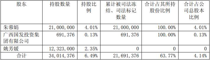 截至2026年1月9日,大股东及其一致行动人股份累计被司法冻结/标记股份的情况如下: