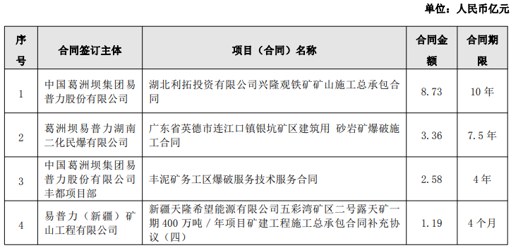 在10-12月期间,新签的单笔合同金额在1亿元以上的爆破服务工程施工类日常经营合同包括:
