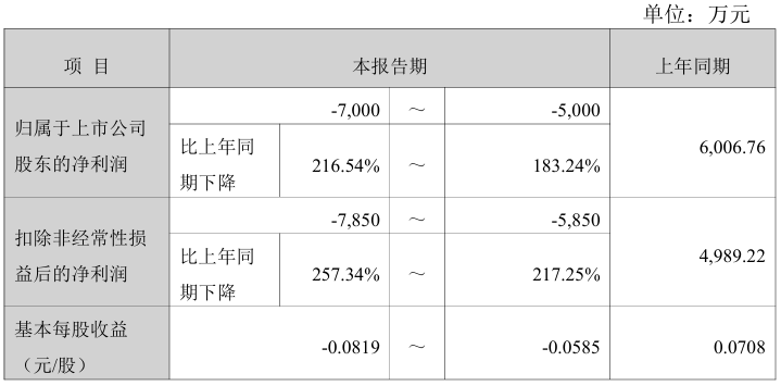 1月16日,索菱股份(002766)发布公告,预计2025年度约亏损7000万元至5000万元,较上年同期下降216.54%至183.24%。具体数据如下:
