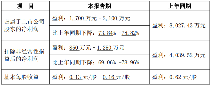 1月29日,洪兴股份(001209)发布公告,预计2025年度归母净利润为1700万元至2100万元,较上年同期的8027万元下降73.84%至78.82%。