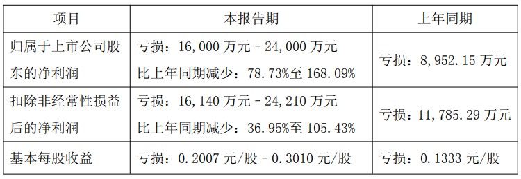 1月29日,德尔未来(002631)发布公告,预计2025年度归母净利润将出现亏损,范围为1.6亿元至2.4亿元,比上年同期亏损的8952万元减少78.73%至168.09%。