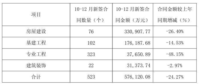 1月29日,宁波建工(601789)发布公告,2025年第四季度公司及下属子公司新签合同523个,合同金额累计约57.61亿元,较上年同期下降24.27%。