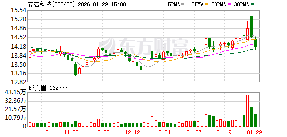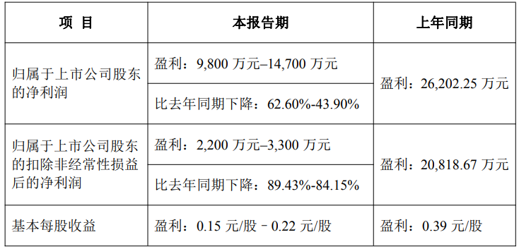 1月29日,安洁科技(002635)发布公告,预计2025年度归母净利润为9800万元至1.47亿元,较上年同期的2.62亿元下降43.90%-62.60%。