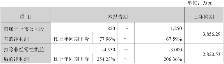 1月29日,联合光电(300691)发布公告,预计2025年度归母净利润为850万元至1250万元,同比下降67.59%至77.96%。