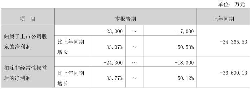 1月30日,科翔股份(300903)发布公告,预计2025年度亏损1.7亿元-2.3亿元,下降幅度为33.07%至50.53%。