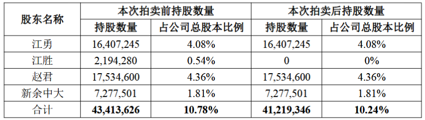 拍卖股份最终全部过户完成,公司控股股东、实际控制人及其一致行动人本次被司法拍卖前后持股情况变动如下: