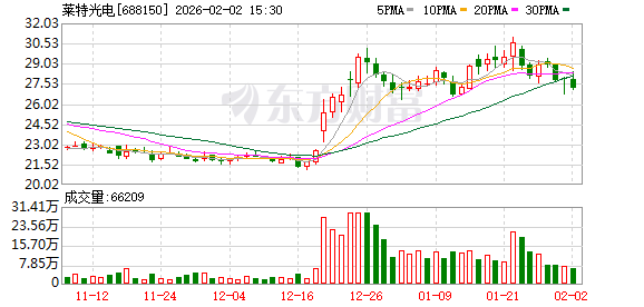 2月2日,莱特光电(688150)发布公告,截至2026年1月31日已回购212万股,占总股本的0.5267%,回购资金总额为5001万元,回购价格区间为17.3元/股至26.95元/股。