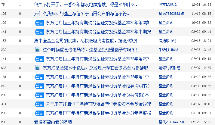 张伟锋管理的东方红睿玺三年持有(501049)2023年至2025年依次净赎回25亿份、33亿份及27亿份,三年累计净赎回约85亿份。同期,李竞管理的东方红启东三年持有(008985)累计净赎回约52亿份,苗宇管理的东方红睿泽三年持有(501054)累计净赎回约49亿份,郭乃幸管理的东方红智远三年持有(009576)累计净赎回约35亿份。