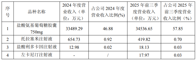 公司拟中选产品2024年及2025年前三季度营业收入情况表: