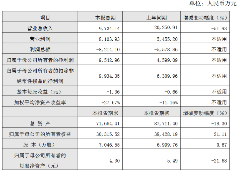 2月26日,禾信仪器(688622)发布公告,2025年度业绩快报显示,公司营业总收入为9734万元,同比下降51.93%;归母净亏损9543万元,较去年同期亏损4599万元相比,亏损额进一步扩大。具体数据如下: