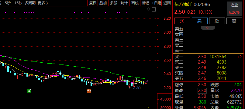 盘初,海洋经济概念拉升,东方海洋(002086)、中水渔业涨停,东方海洋超100万手买单封板,中科海讯、神开股份、深水海纳、巨力索具、海兰信、克莱特、亚星锚链高开。