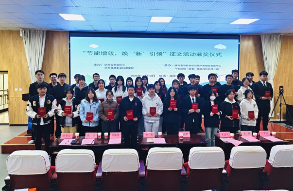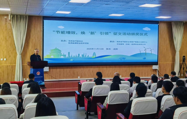11月13日,“节能增效,焕‘新’引领”征文活动颁奖仪式在陕西能源职业技术学院举行。本次活动由陕西省节能协会与陕西能源职业技术学院联合主办,陕西省节能协会双碳产教融合发展中心、中创臻智(西安)能源科技有限公司共同承办,吸引了全校师生及社会各界的广泛关注。