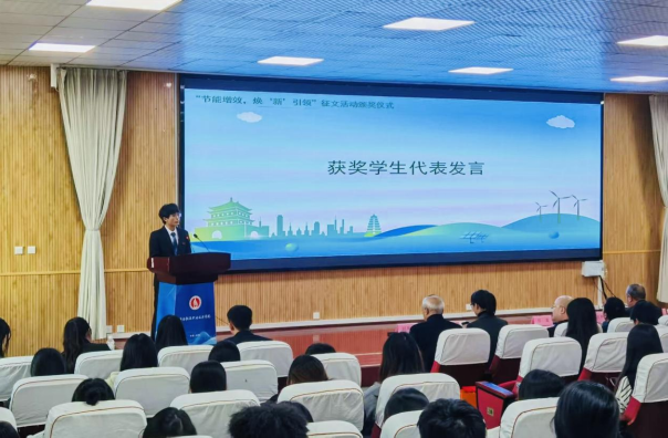 监事长刘恩让在致辞中表示:“在国家‘双碳’战略深入推进的背景下,本次征文活动得到了全校同学的踊跃参与。青年学子们以笔为媒,展现了他们对节能降碳的深刻思考,令人倍感欣慰。”他强调,颁奖仪式不仅是对优秀作品的表彰,更是为了凝聚绿色发展共识,推动节能行动在校园内落地生根。