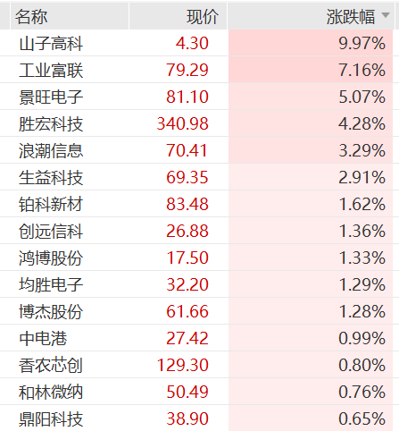 英伟达产业链多股上涨,山子高科封板,工业富联涨逾7%,刷新历史新高,胜宏科技、香农芯创等跟涨。
