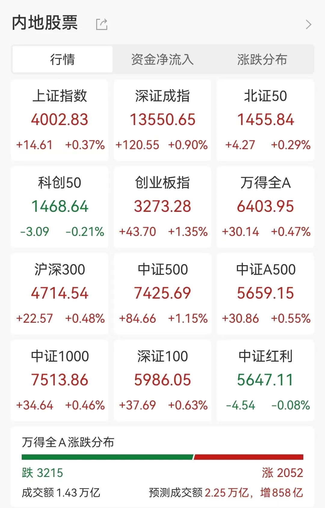 沪深两市半日成交额1.42万亿,较上个交易日放量719亿。
