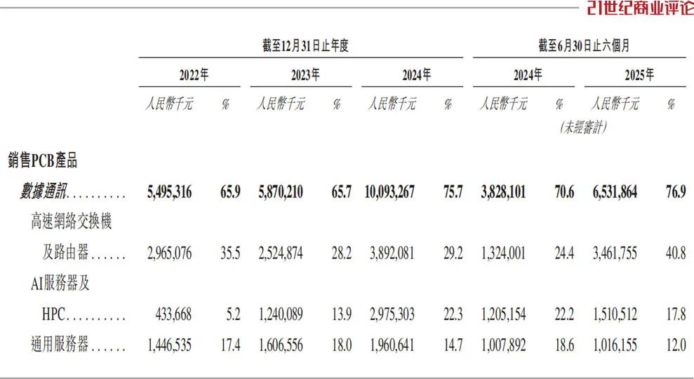 据半年报披露,其AI服务器及HPC(高性能计算)相关PCB产品,收入占比在两成左右。