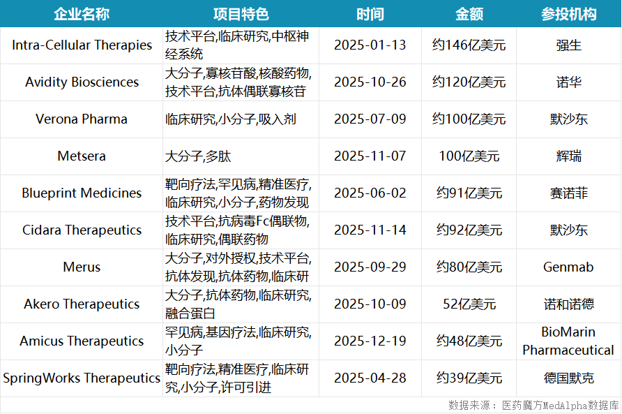 2025年全球创新药并购TOP10