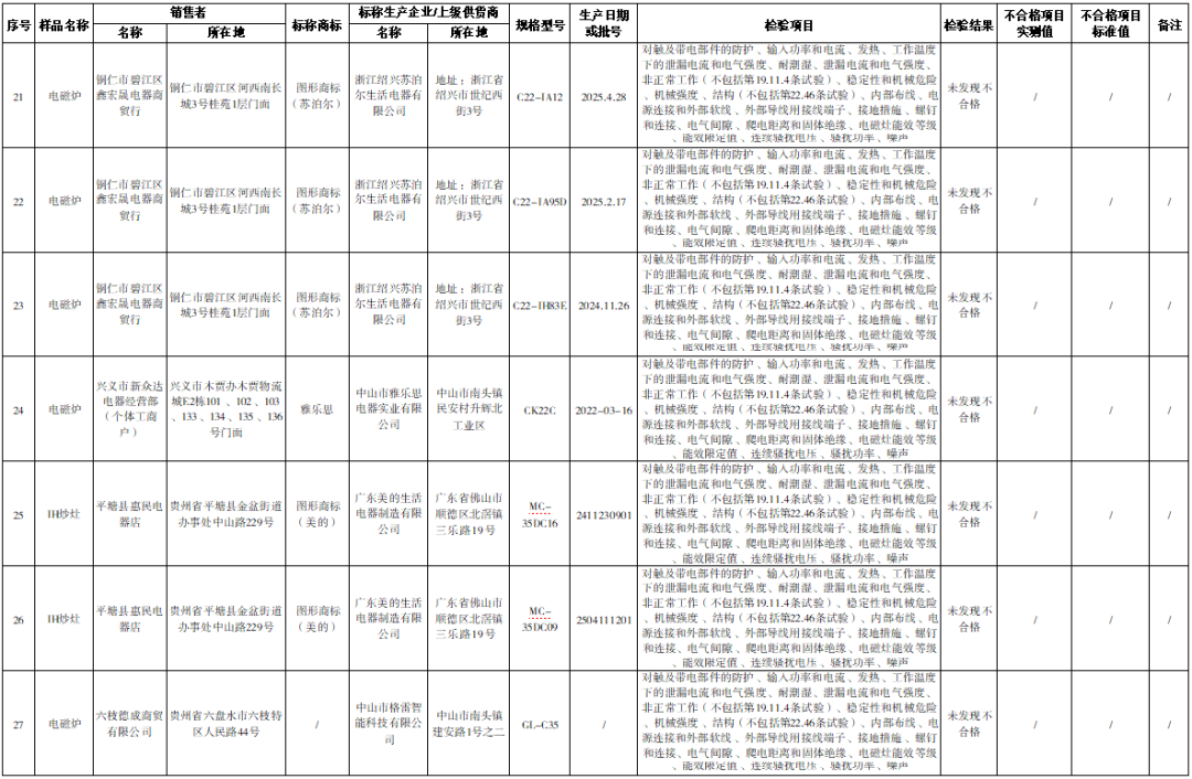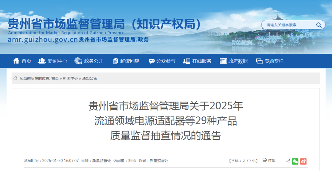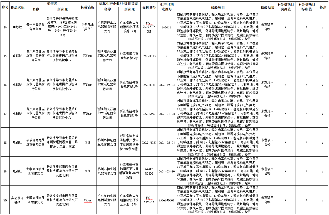 近日,贵州省市场监督管理局网站公布2025年流通领域电源适配器等29种产品质量监督抽查结果。其中,电磁灶产品质量监督抽查情况为:共抽查17家销售者销售的32批次产品。经检验,未发现不合格产品。